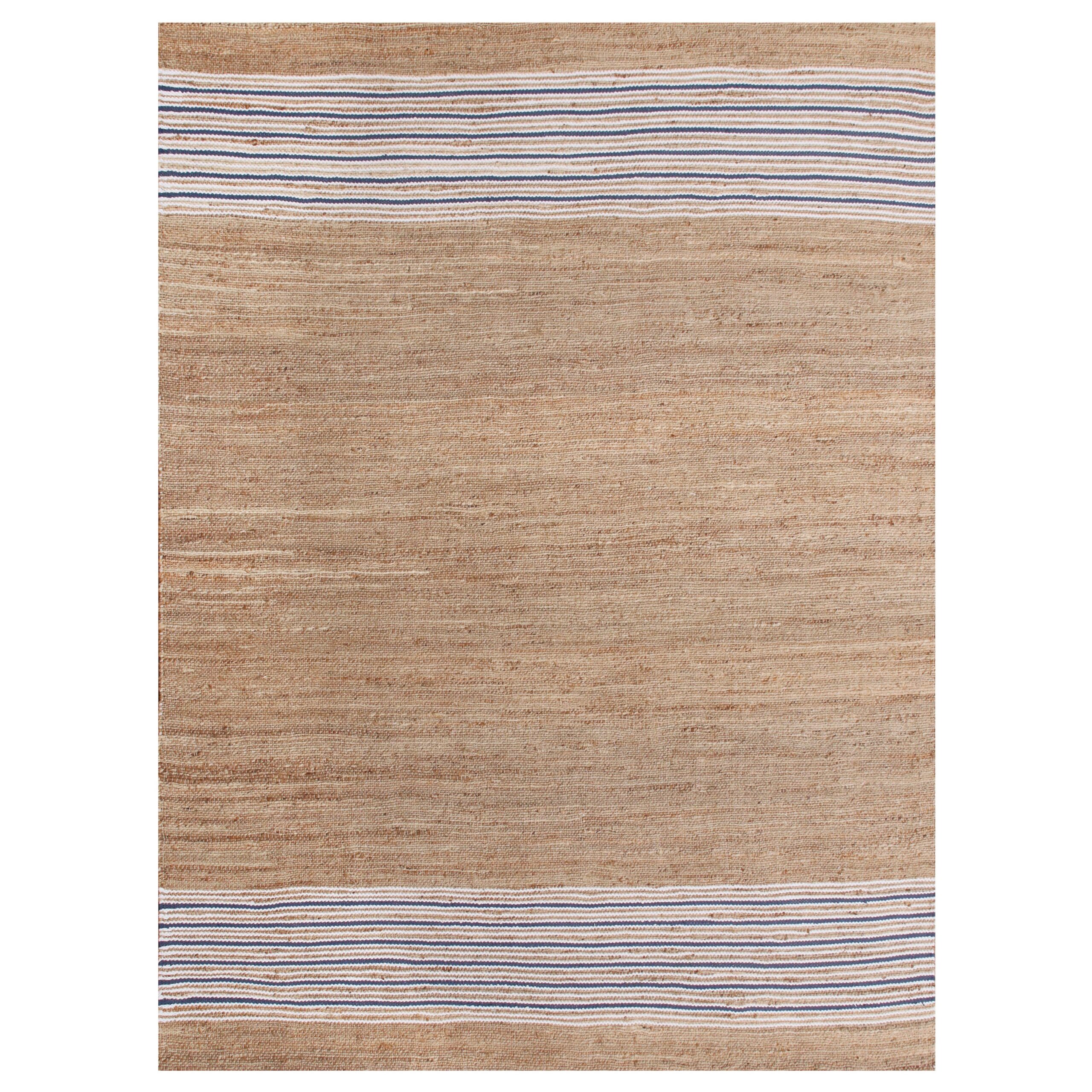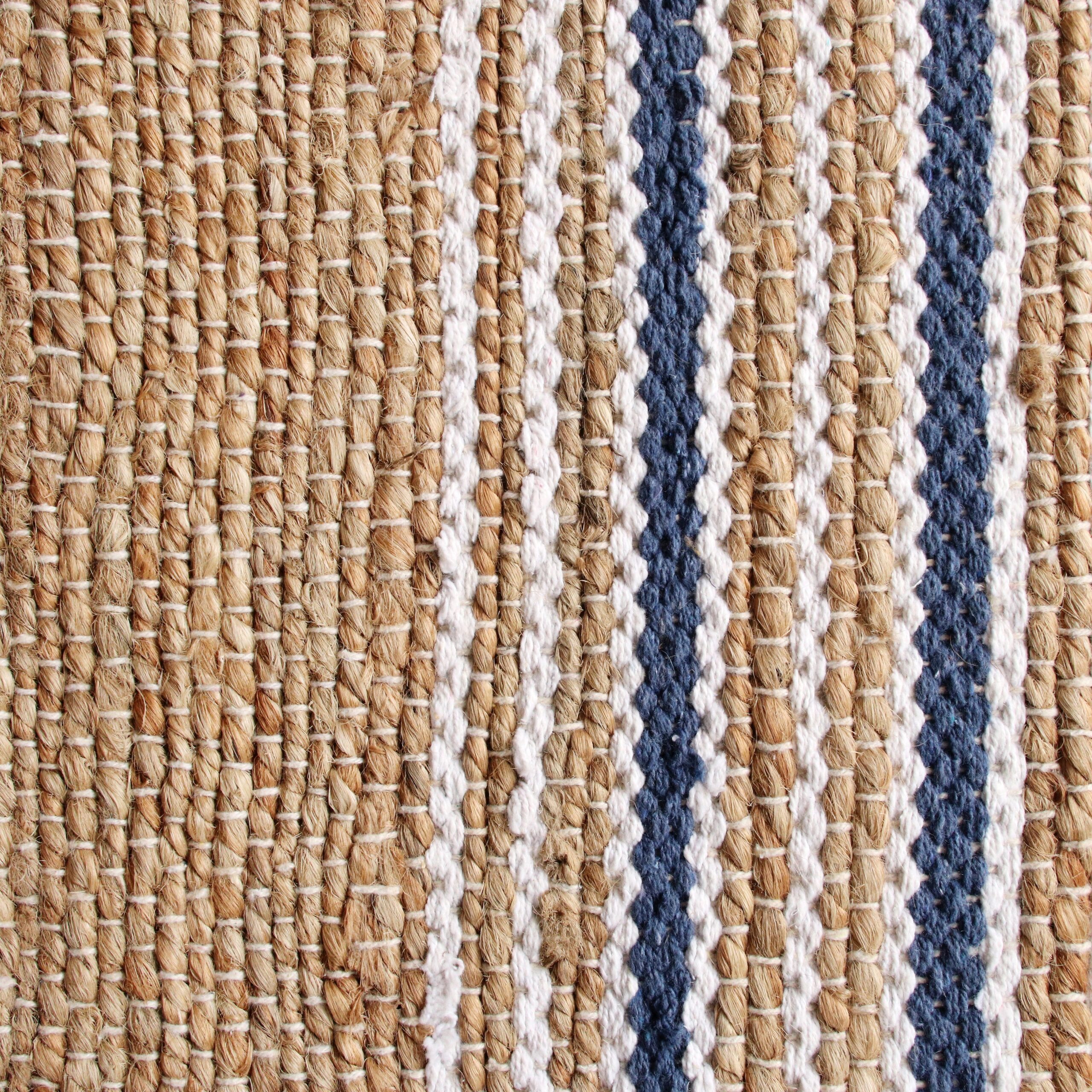 Handwoven in India, this contemporary coastal striped jute area rug combines sustainable natural fibers, classic coastal stripes, and a durable cotton backing to bring timeless texture, contemporary style, and resilient versatility to your space. This balance of natural textures and neutral tones creates a smooth feel underfoot while also showcasing a bordering striped geometric pattern. Melding well with many decor themes, this handmade flatwoven rug is an on-trend piece you can easily layer over or under another rug, or use as a standalone area rug. The durable cotton backing provides a sturdy finish to an already resilient fiber, adding extra durability at an affordable price point.