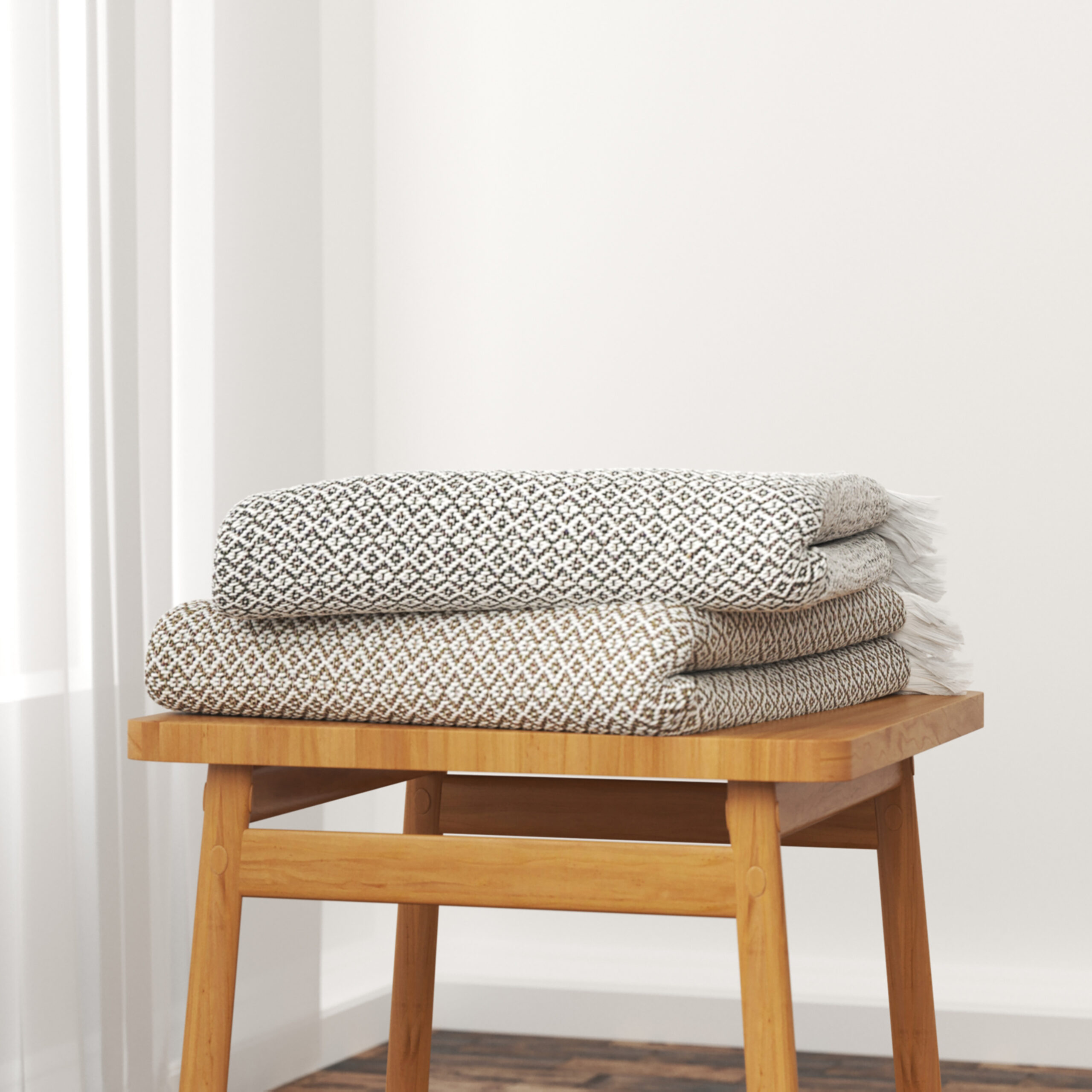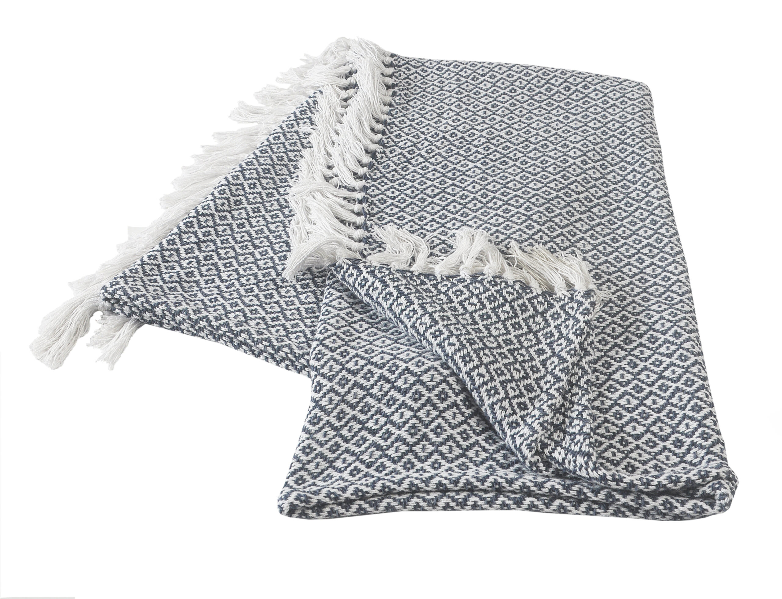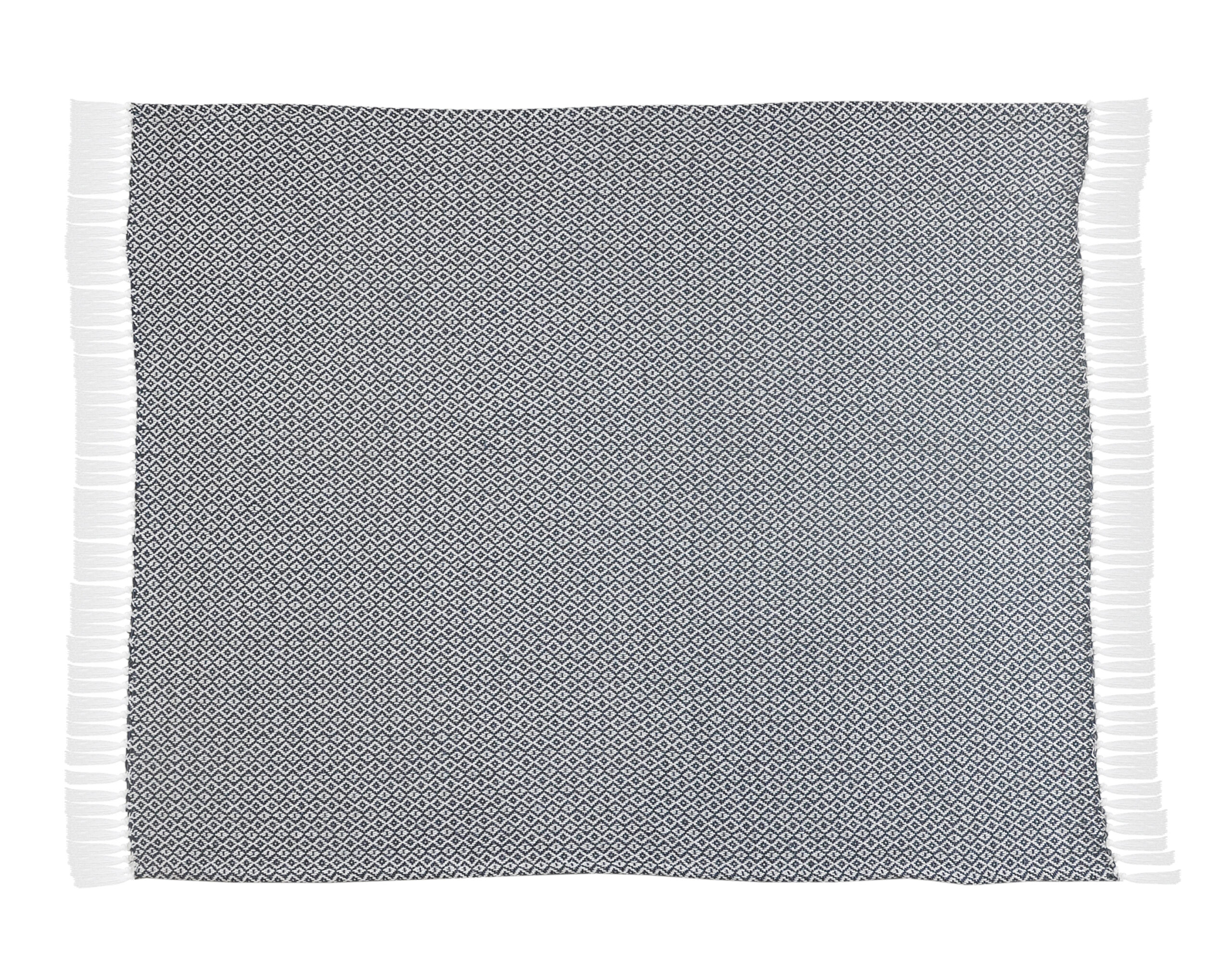 Come get cozy with your new favorite throw blanket! With your new addition, it is quite tempting to stay at home all day. Even if you can’t, you can still enjoy the view of your new throw blanket placed over a chair, folded onto the couch, or spread onto the bed. If a comfy and homey look is what you are going for then this is the throw for you! The well-toned blue and ivory coloring go well with a variety of different home decor themes. The fringe and geometric diamond features also give this blanket an eye-catching appearance. No matter the season, there is always time to relaxand snuggle up with this new addition to your home.