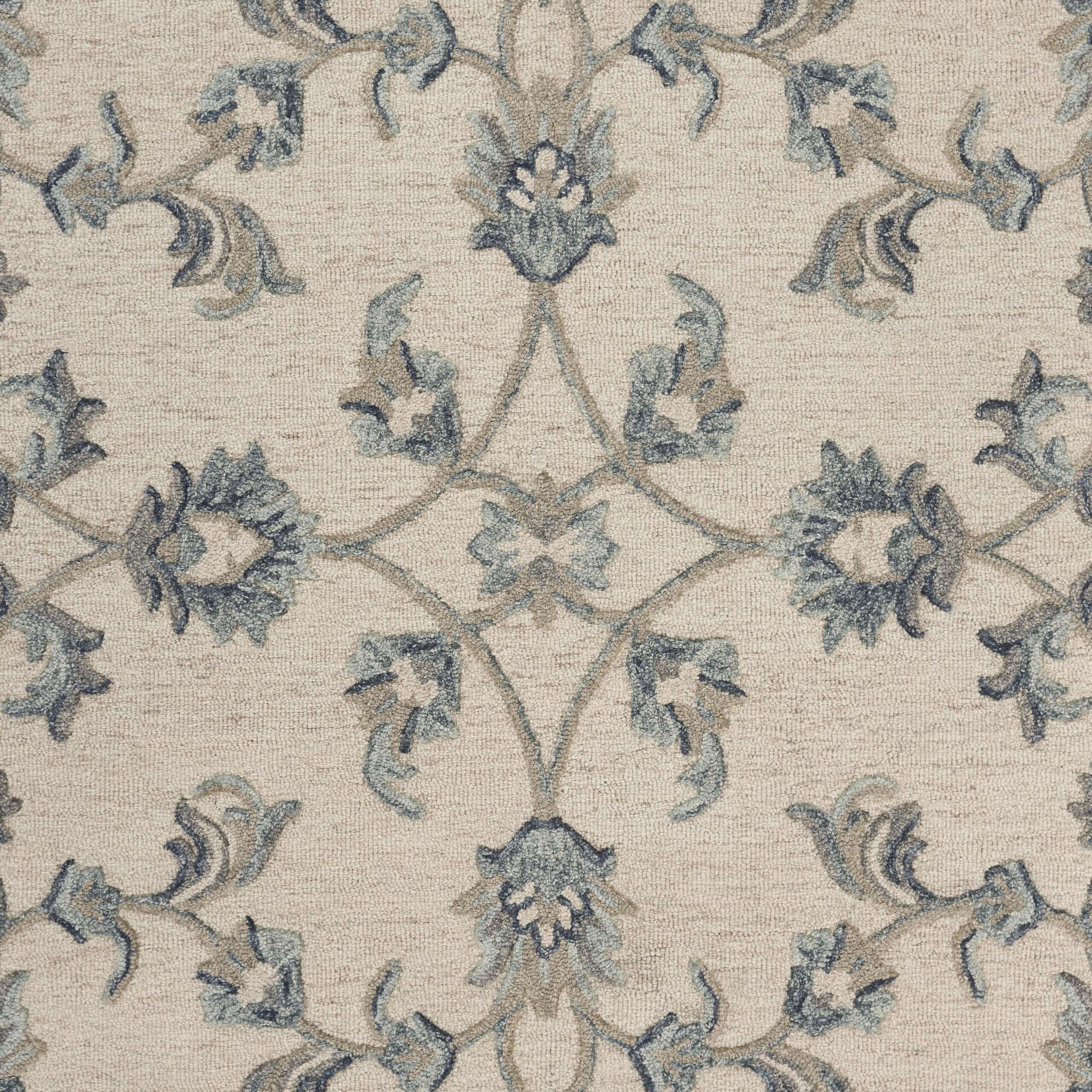 This soft-toned ivory and light blue area rug displays an intricate mirroring floral pattern that is an ideal statement piece. Traditional mastery represents this piece and everything our Victorian Collection is encompassing. The detailing and craftsmanship in this piece is sure to keep you satisfied for years to come. Hand-tufted in India, this piece has is handmade with acute attention to detail and fine material. Bring this piece home today for a beautiful addition to your space.