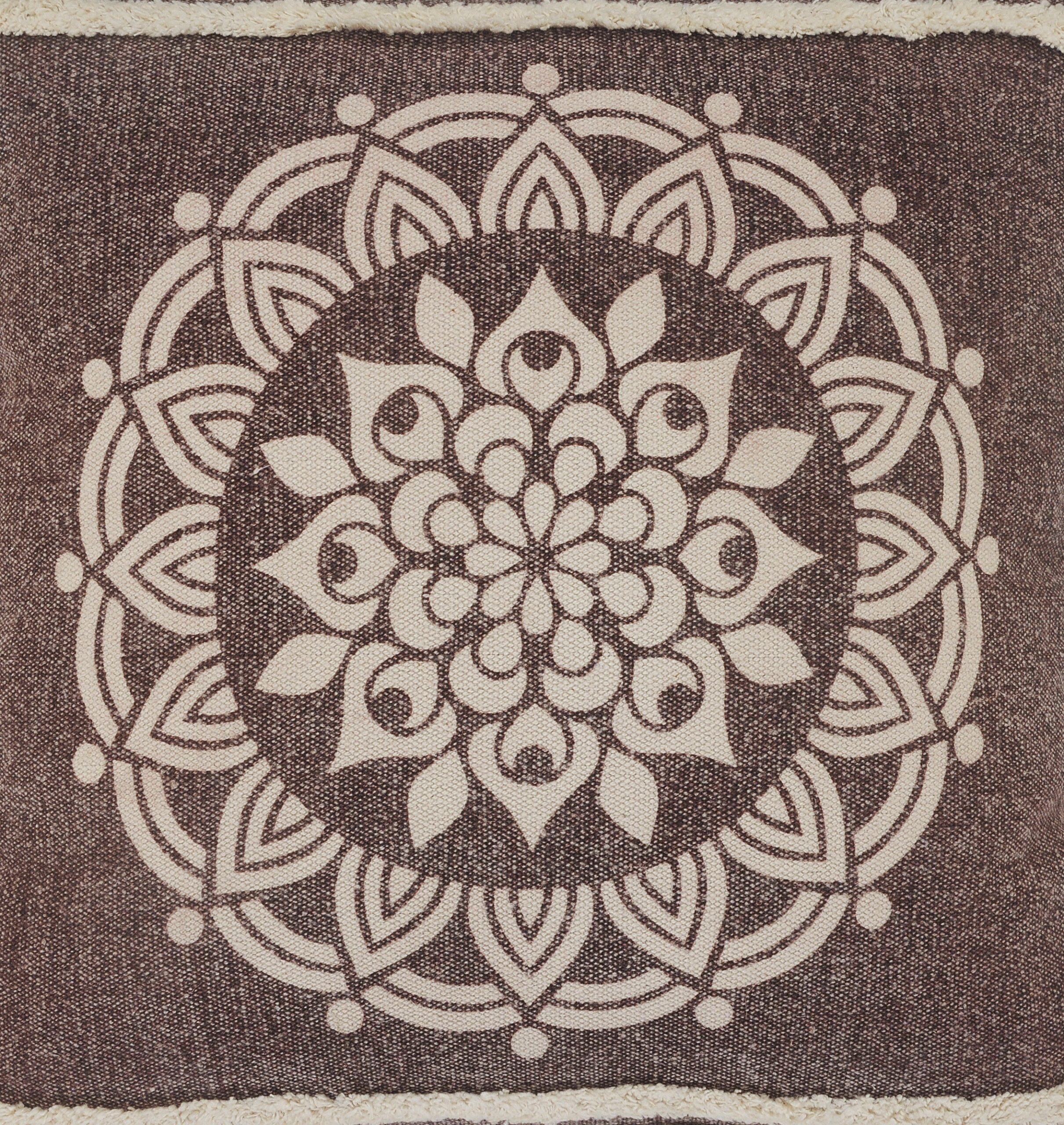 Designed to thrill, our pillow cover will add intricate mastery and eye-pleasing designs to any room. This floral mandala pillow with a well-toned hickory brown hue is the perfect stand-alone accent or a great addition to a casual collection looking for a timeless classic. Handcrafted with the customer in mind, there is no compromise of comfort and style with this easy to use pillow cover.