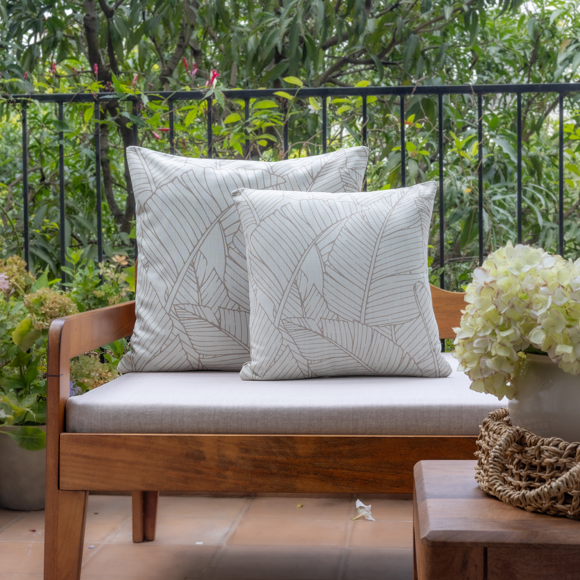 This stunning square pillow cover, crafted in India, features a vibrant tropical palm frond floral pattern that brings a touch of nature to any space. The natural durability of its 100% polyester construction makes it ideal for various decor styles and suitable for both indoor and outdoor use. The zipper closure allows for easy insertion and removal, ensuring convenience. Designed for versatility, this reversible pillow cover features a solid white back for a neutral complement to the bold front design.