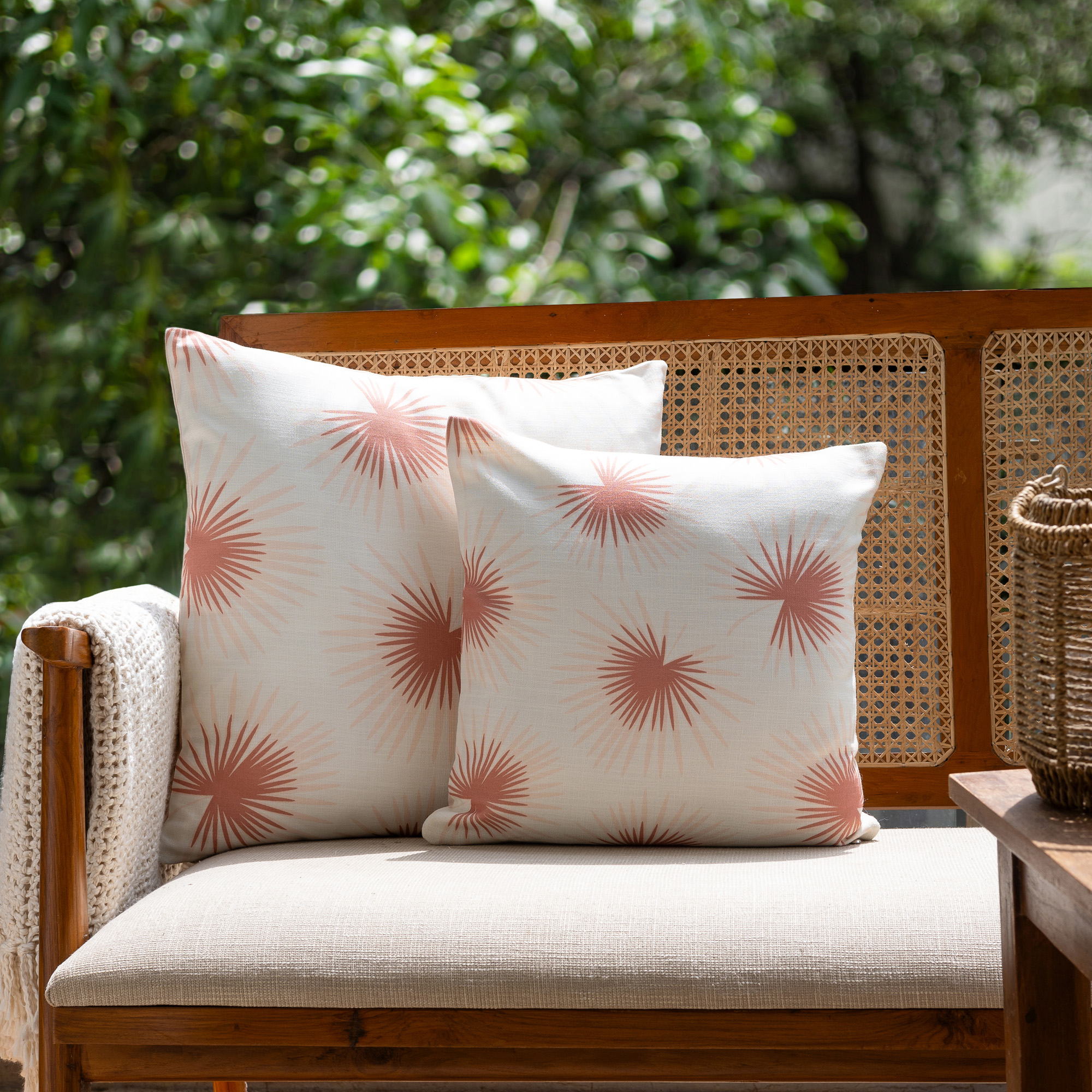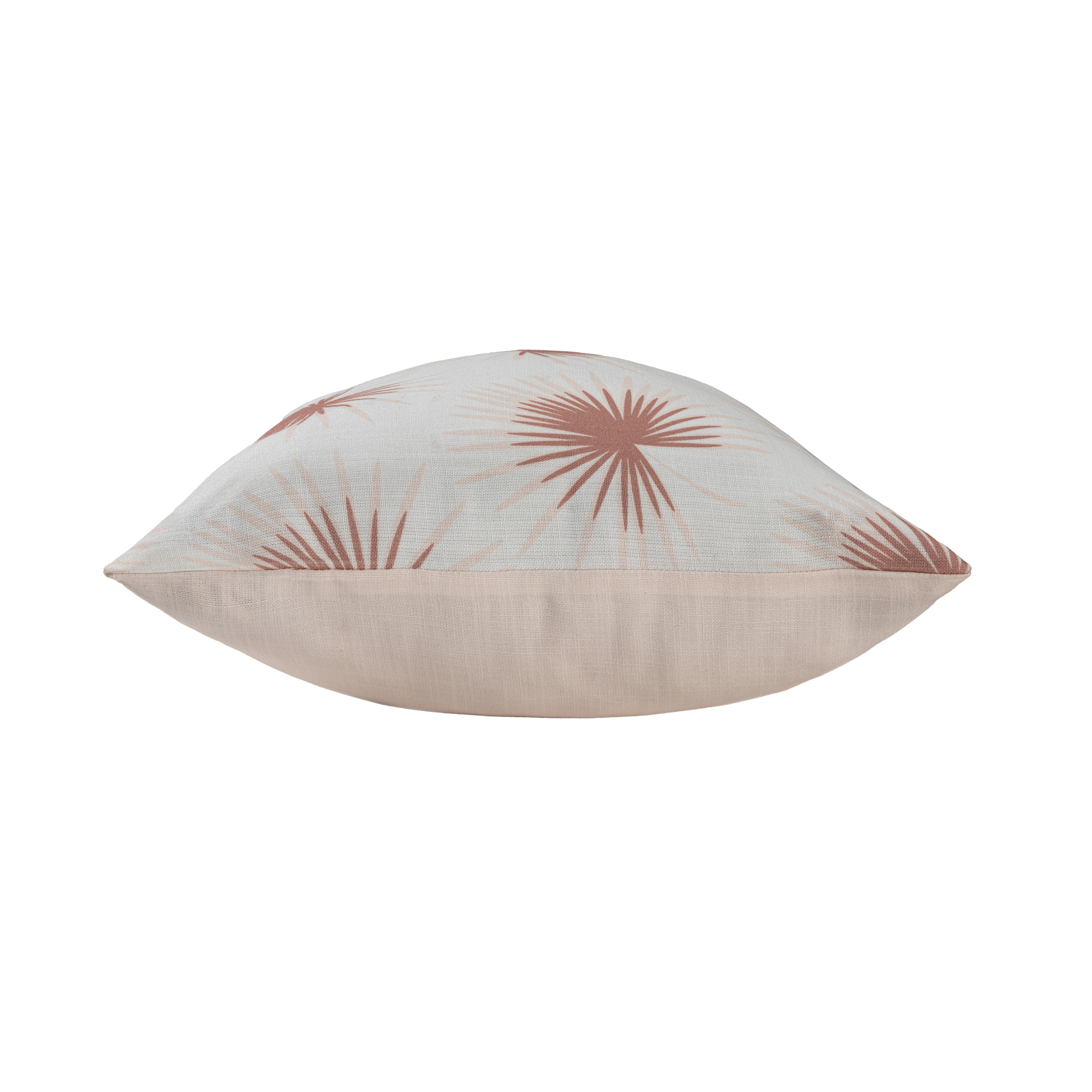 This square pillow cover showcases a vibrant tropical palm frond botanical design in coral and off-white, adding a refreshing coastal touch to any setting. Crafted from 100% polyester, its durable and weather-resistant construction makes it ideal for both indoor and outdoor use. The convenient zipper closure allows for easy removal, while its reversible design features a solid beige back for versatile styling. Machine washable on a delicate cycle, this pillow cover ensures effortless maintenance while maintaining its beauty over time.