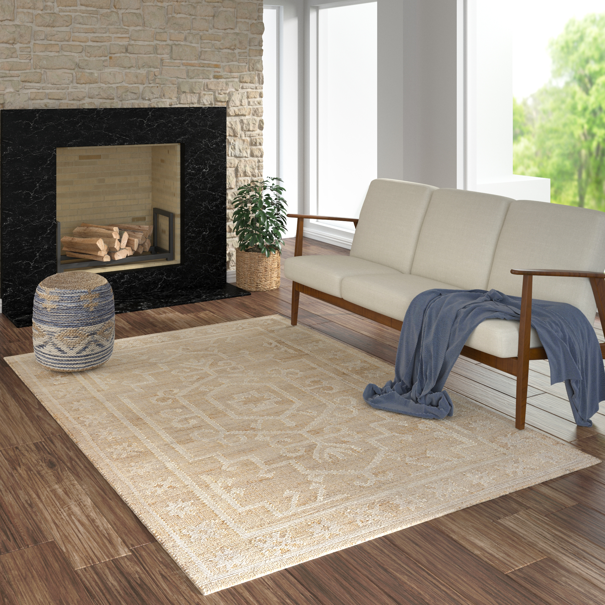 Transform your living space with the elegance of the Hand-Woven Indoor Area Rug. Hand-woven in India, this rug blends 65% jute, 15% wool, and 20% cotton for durability and comfort. Its classic medallion pattern and transitional style seamlessly complement any decor, from traditional to casual settings. The cotton backing ensures stability, making it ideal for high-traffic areas. This versatile rug, featuring soothing blue and natural hues, adds warmth and sophistication to your home. Perfect for living rooms, bedrooms, or dining areas, it offers easy maintenance with spot cleaning. Elevate your interior with the timeless charm and craftsmanship of this hand-woven masterpiece.