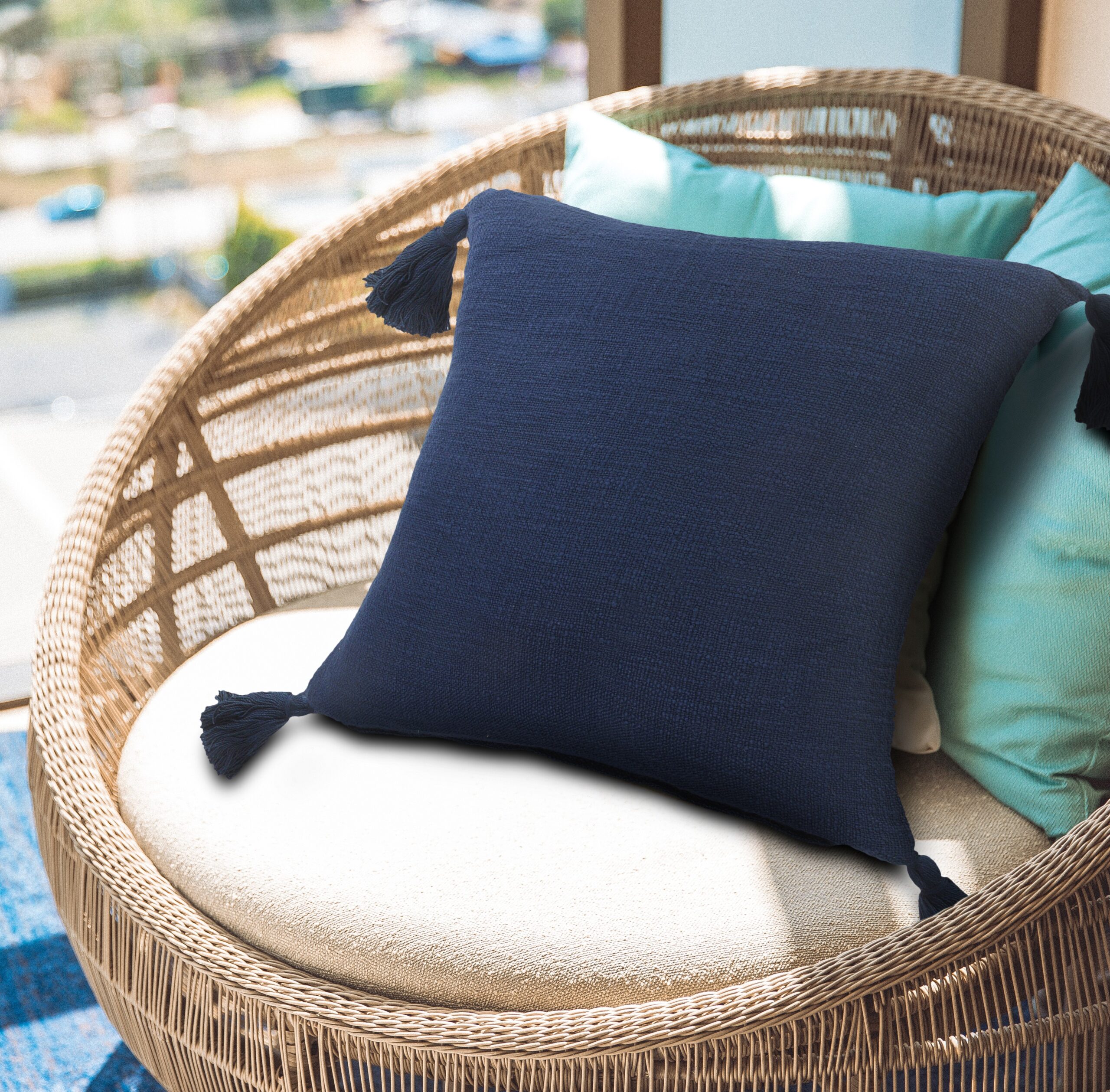 Designed with a balance of leisure and luxury in mind, this solid-color woven throw pillow cover complements a variety of decor styles, from casual and contemporary to modern and boho-chic. The soft, decorative pillow is made from textured cotton slub fabric, adding unique dimension and dynamic depth to any home or office space. Stand alone or layer with other accents—this simple throw pillow cover brings cohesive color and a touch of texture with its neutral-toned cotton fabric front and back, accented by coordinating corner tassels.
