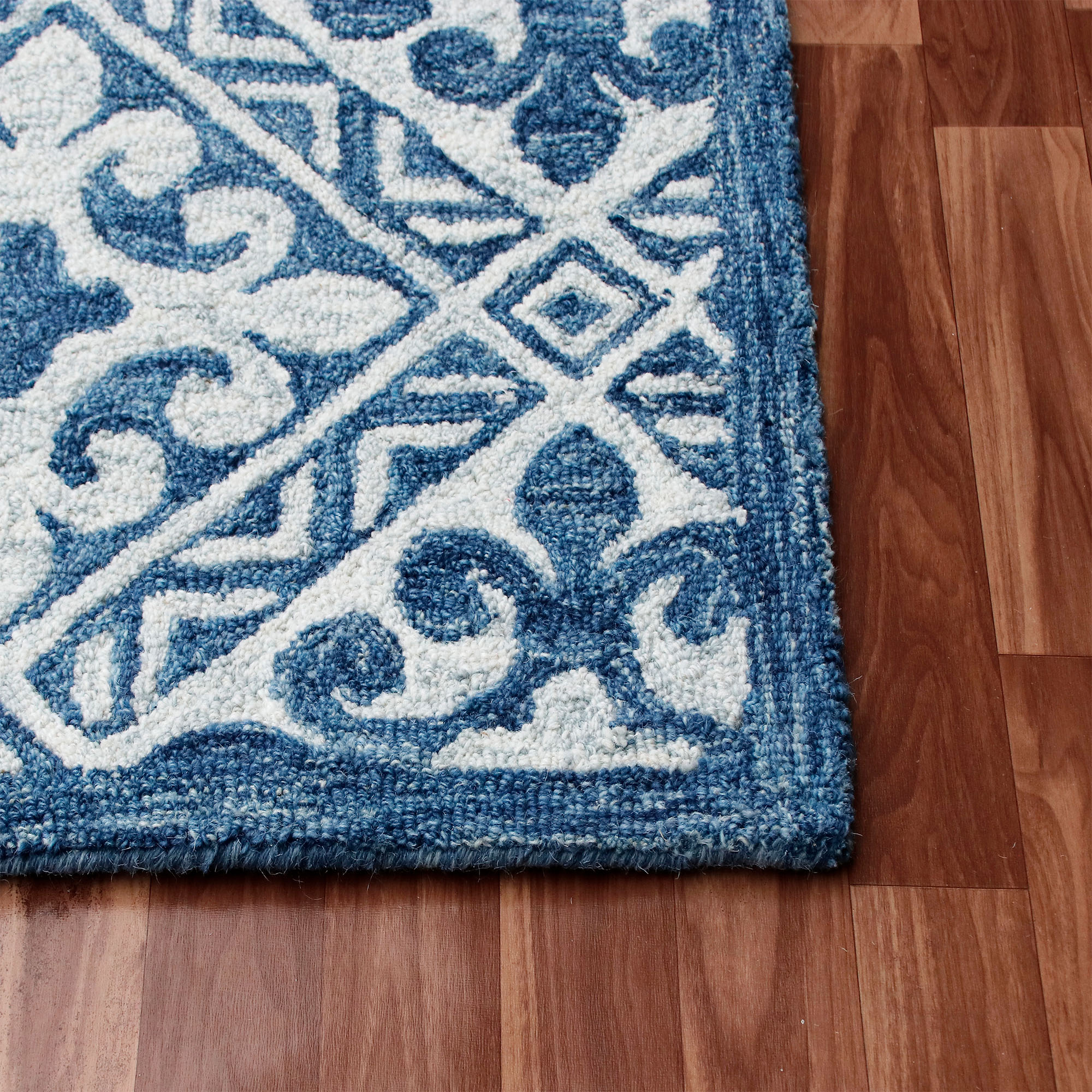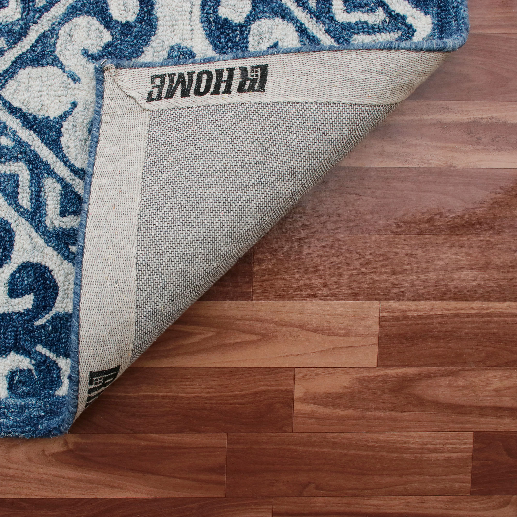 Embrace the vibrant spirit of bohemian decor with this hand-tufted indoor rug. Crafted in India using 100% wool, it showcases stunning floral and border designs that add an artistic touch to any space. This materpiece will transform your simple rooms into cozy havens of style and comfort. Immerse yourself in the luxurious softness of this exquisite rug and let it become the centerpiece of your sanctuary.