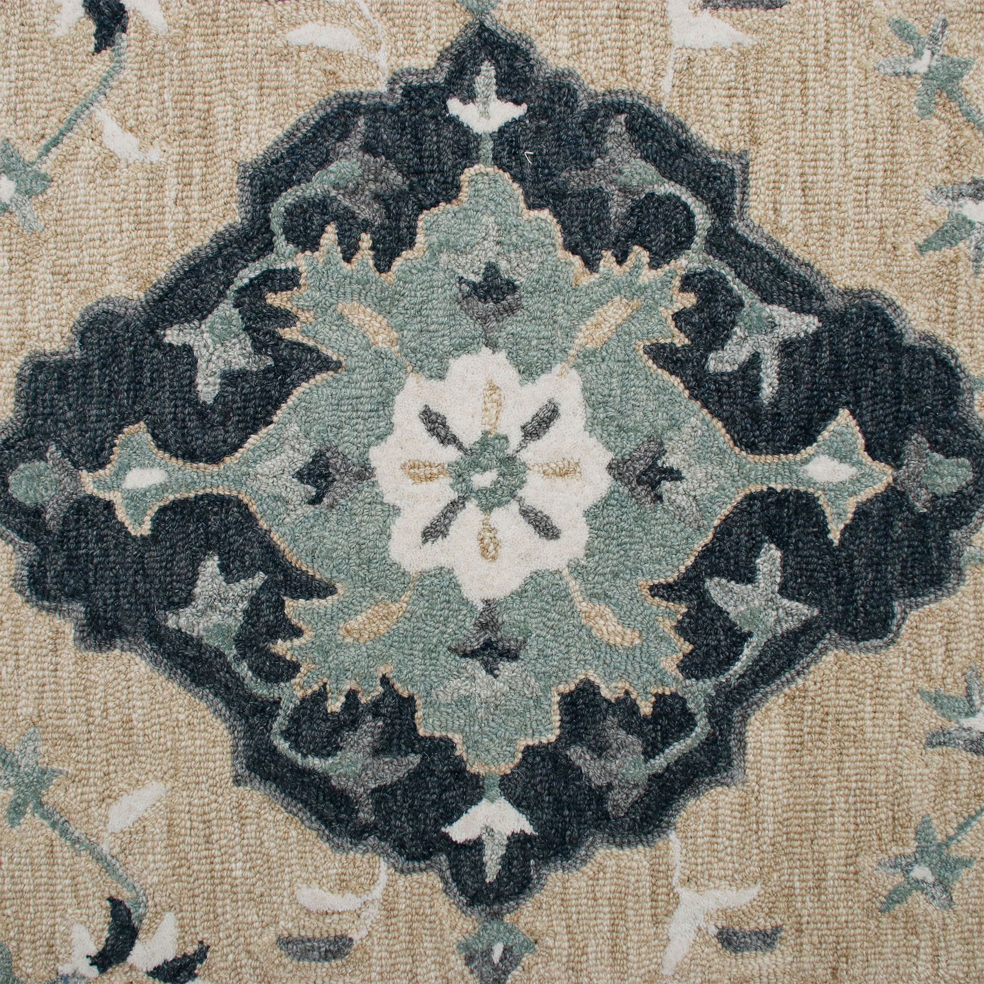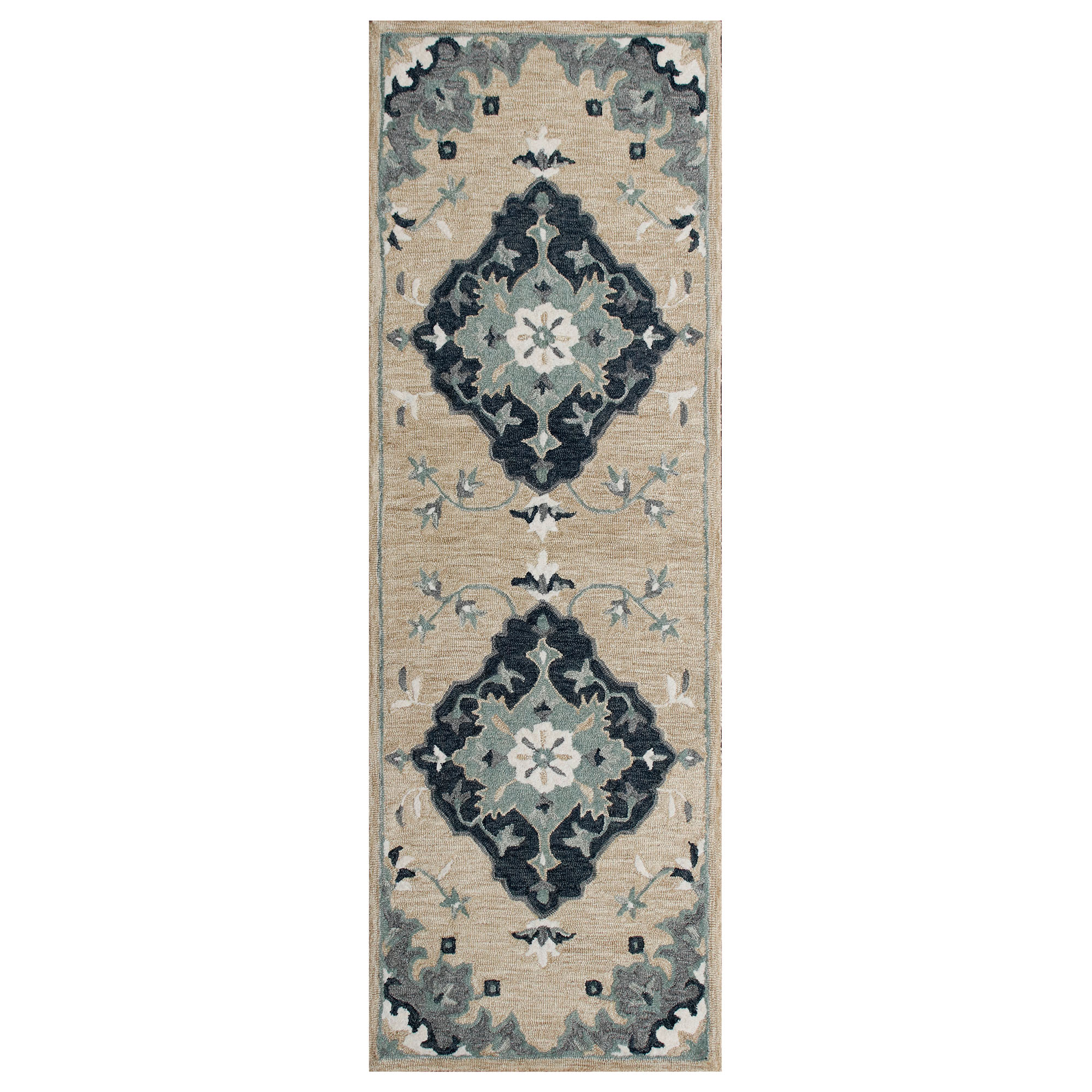 Embrace the vibrant spirit of bohemian decor with this hand-tufted indoor rug. Crafted in India using 100% wool, it showcases stunning floral and border designs that add an artistic touch to any space. This materpiece will transform your simple rooms into cozy havens of style and comfort. Immerse yourself in the luxurious softness of this exquisite rug and let it become the centerpiece of your sanctuary.