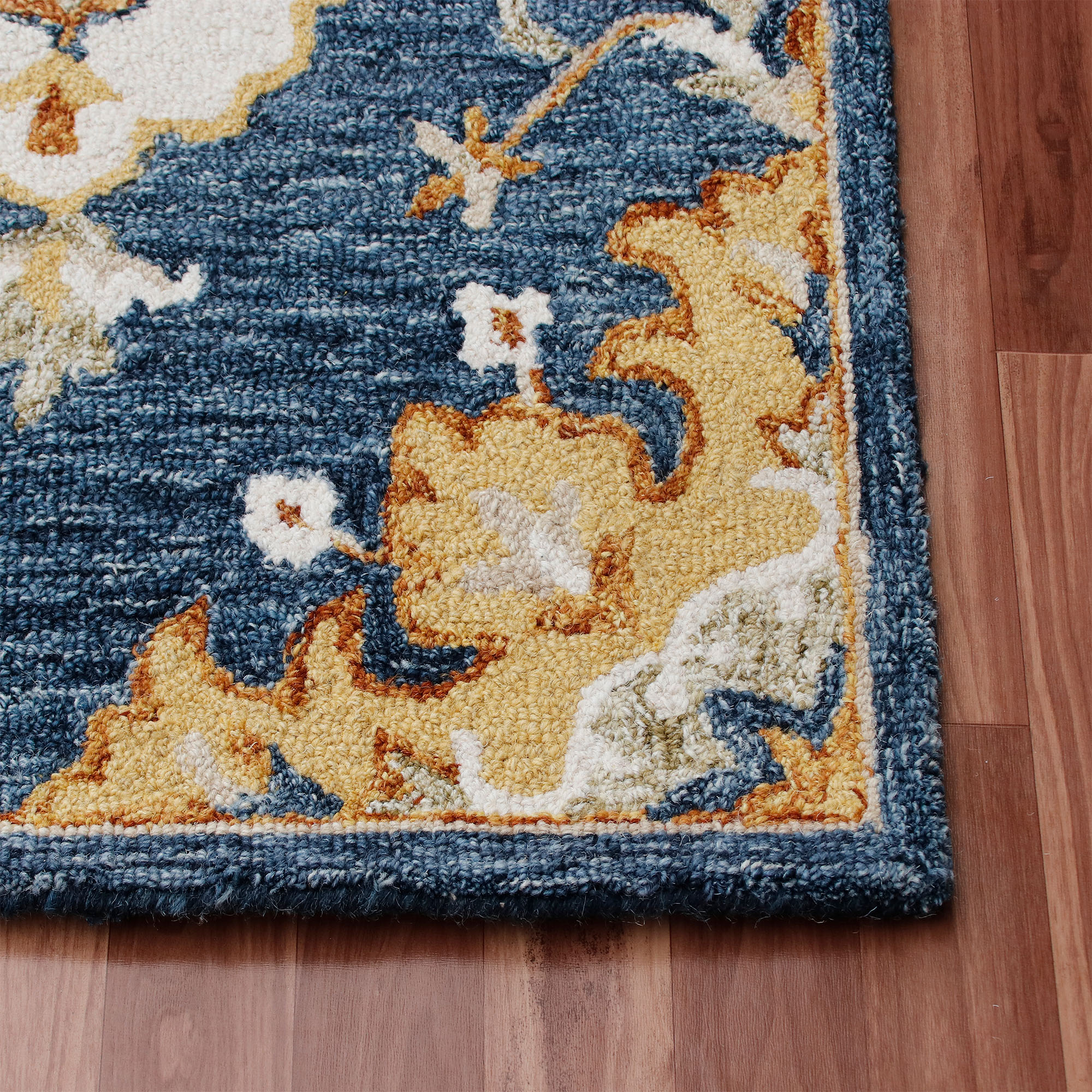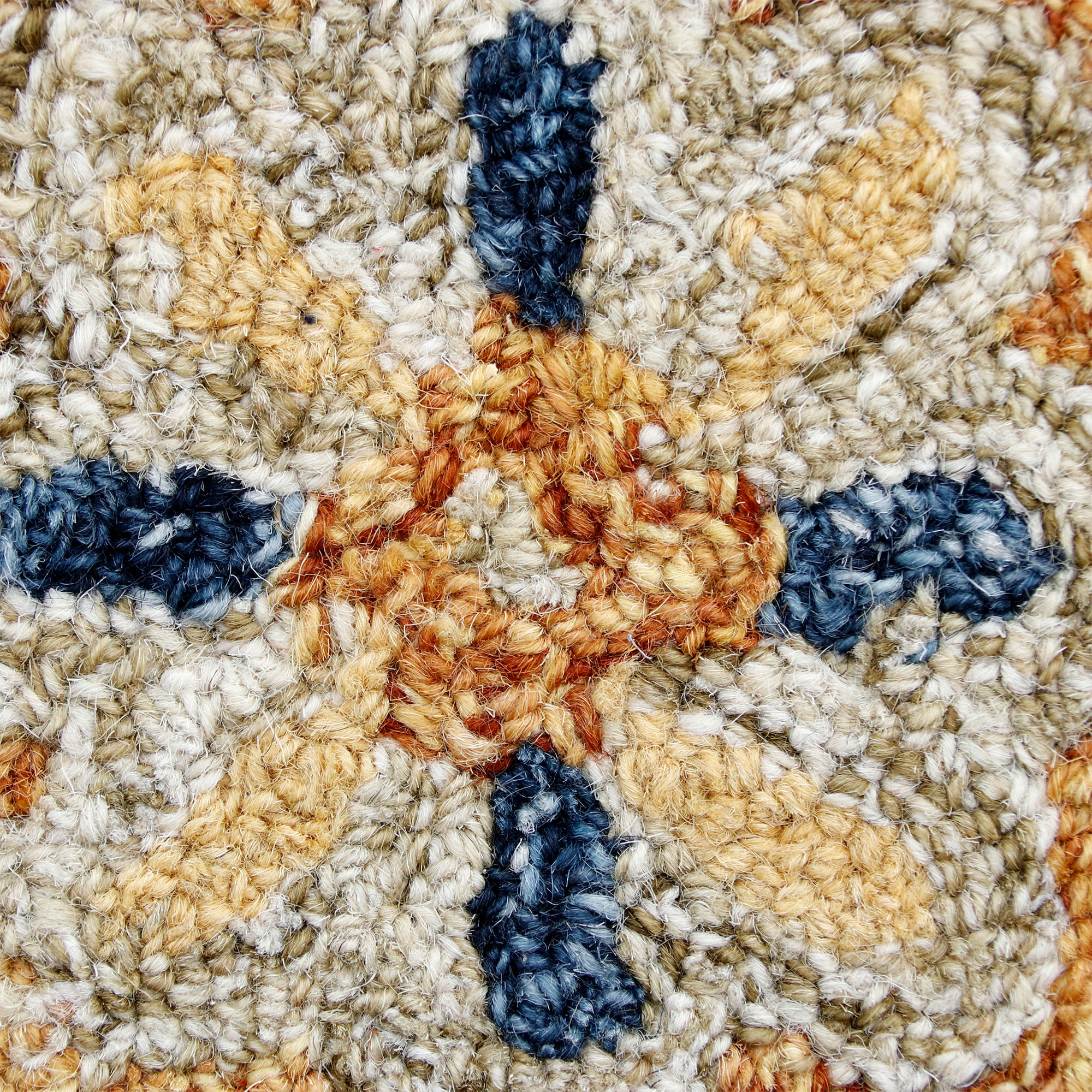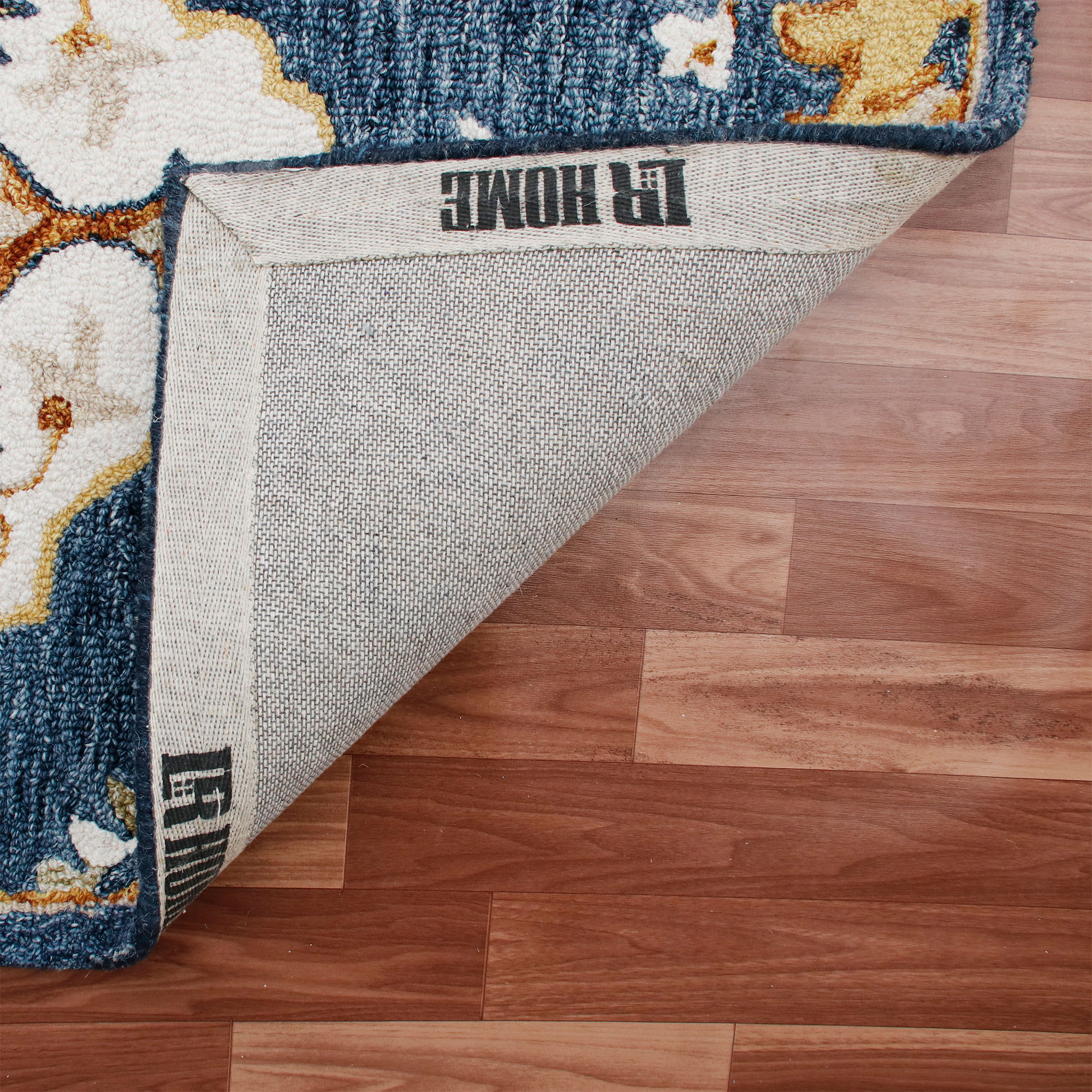 Embrace the vibrant spirit of bohemian decor with this hand-tufted indoor rug. Crafted in India using 100% wool, it showcases stunning floral and border designs that add an artistic touch to any space. This materpiece will transform your simple rooms into cozy havens of style and comfort. Immerse yourself in the luxurious softness of this exquisite rug and let it become the centerpiece of your sanctuary.