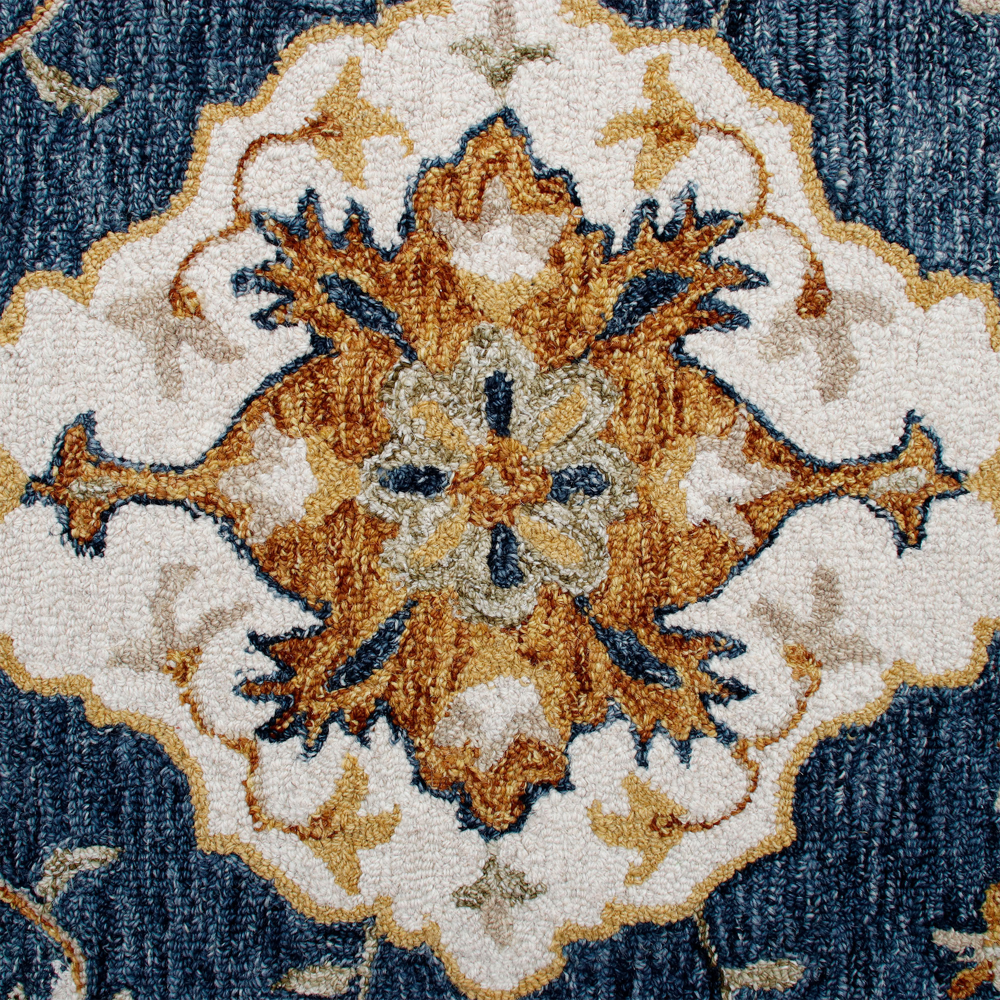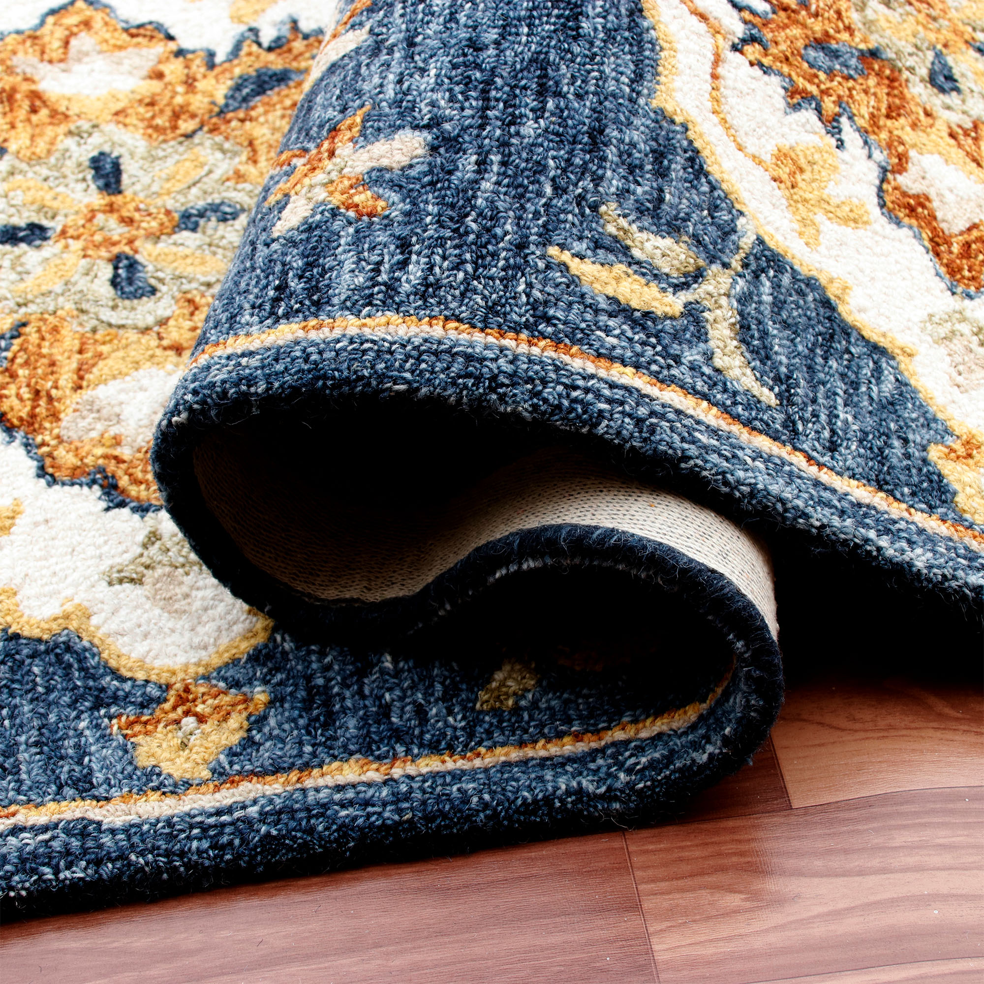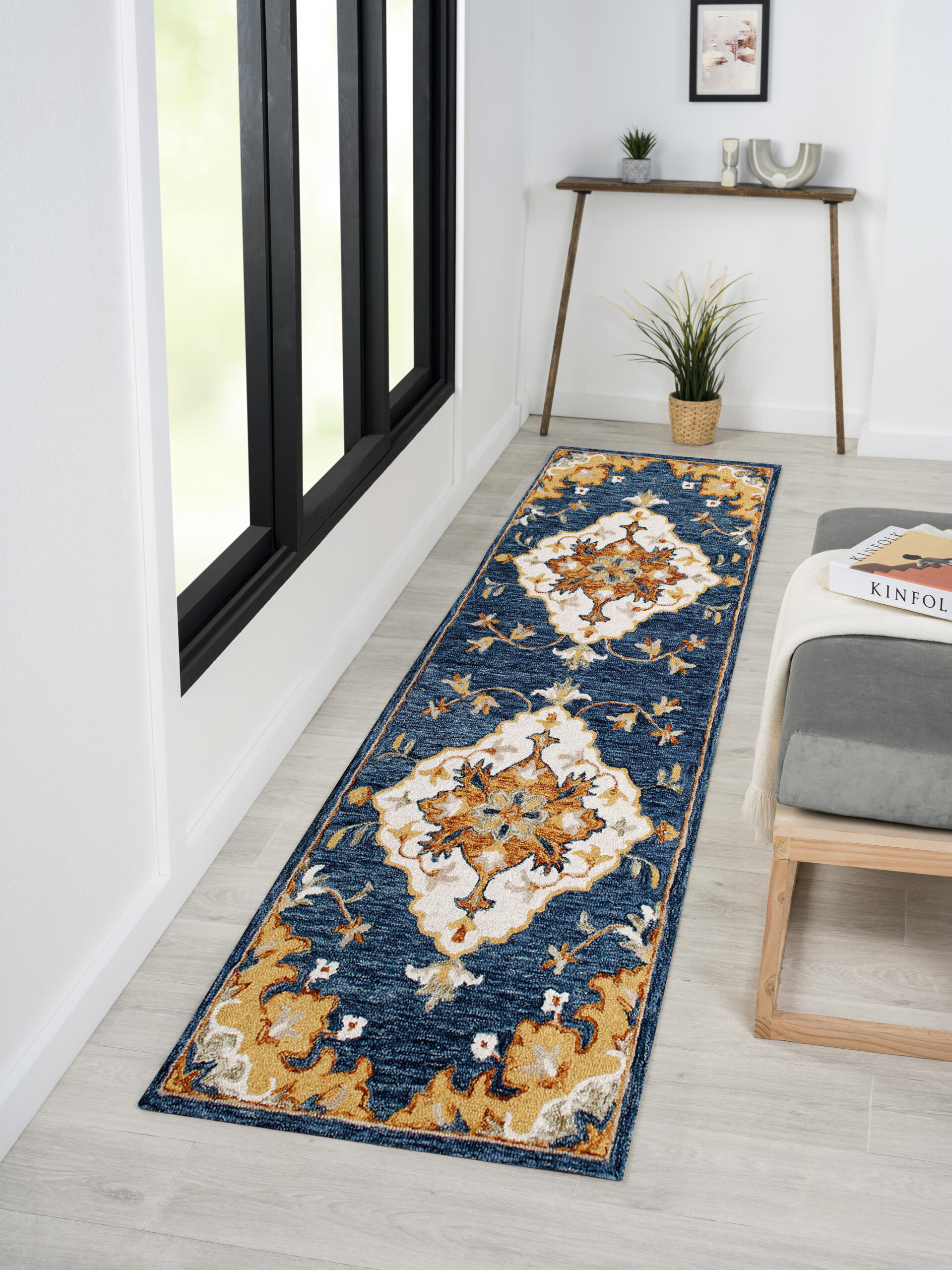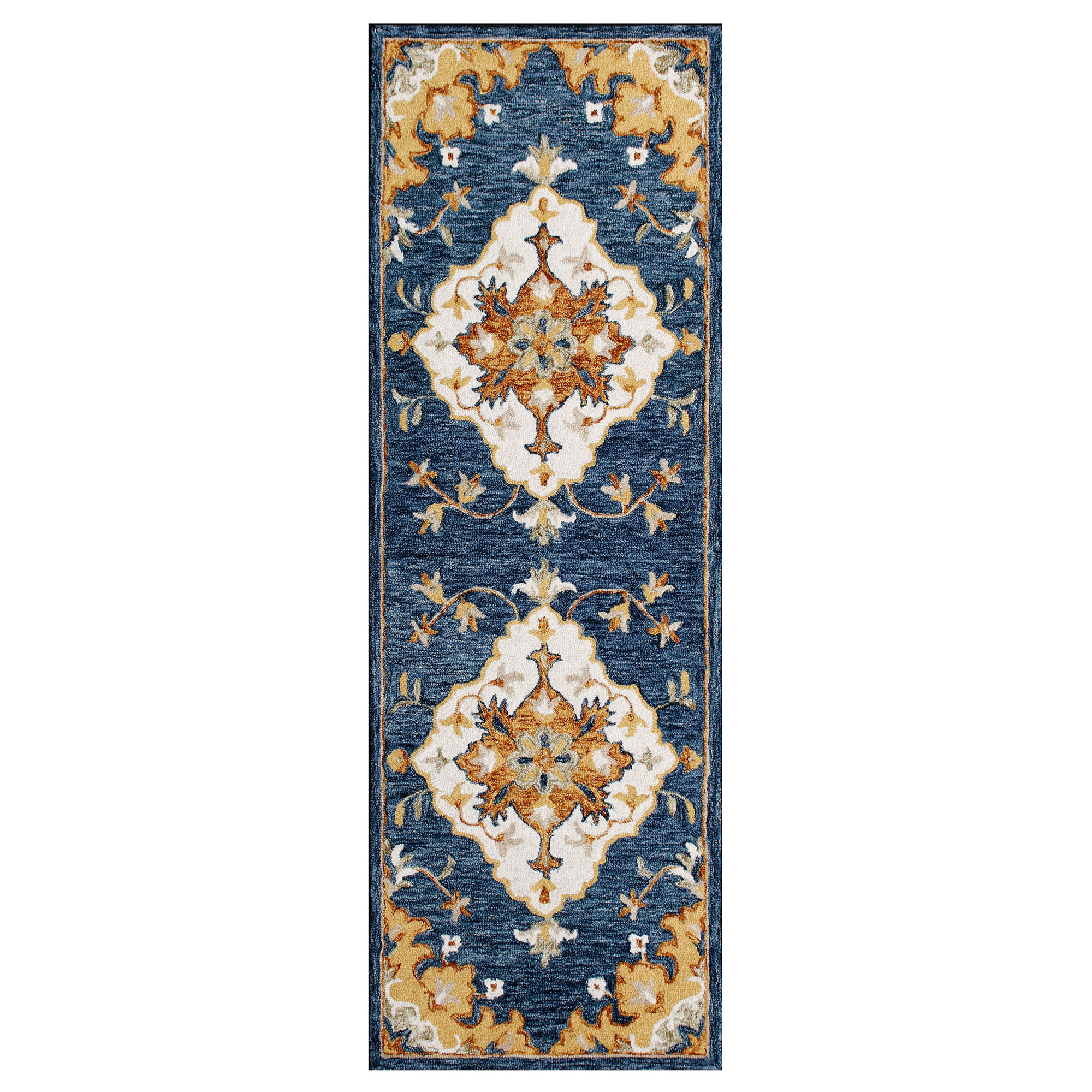 Embrace the vibrant spirit of bohemian decor with this hand-tufted indoor rug. Crafted in India using 100% wool, it showcases stunning floral and border designs that add an artistic touch to any space. This materpiece will transform your simple rooms into cozy havens of style and comfort. Immerse yourself in the luxurious softness of this exquisite rug and let it become the centerpiece of your sanctuary.