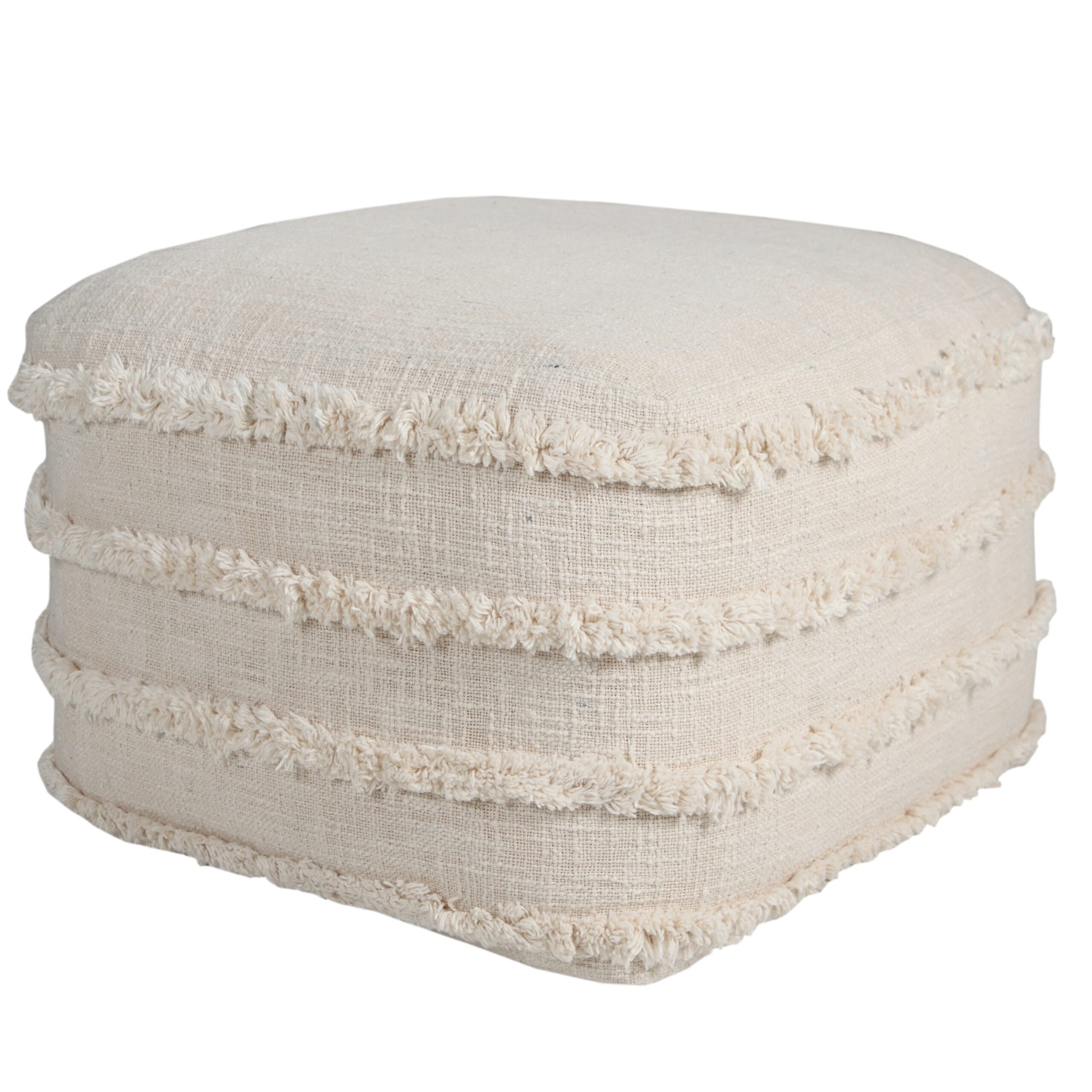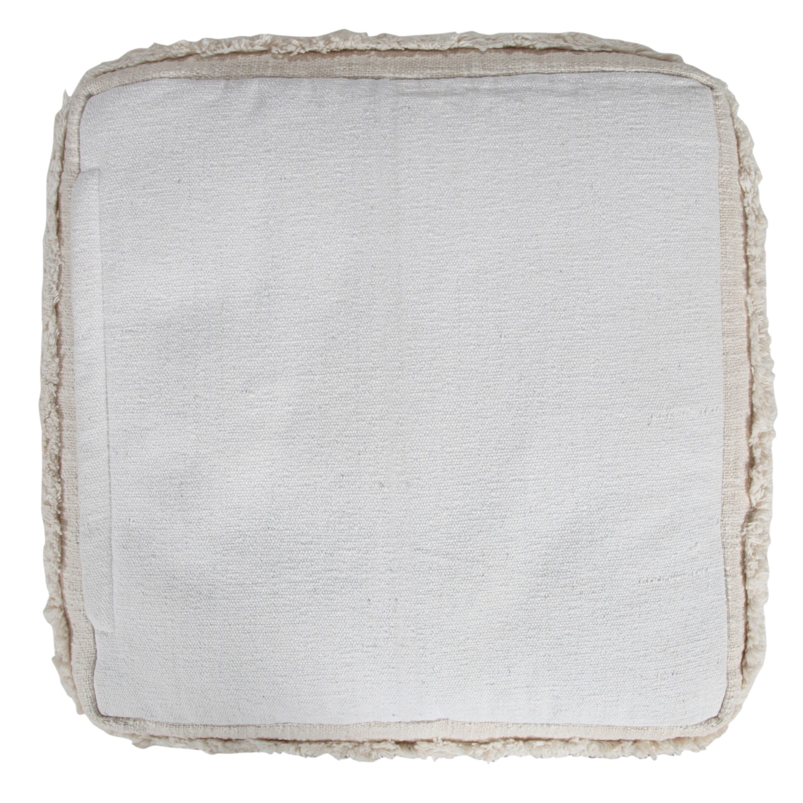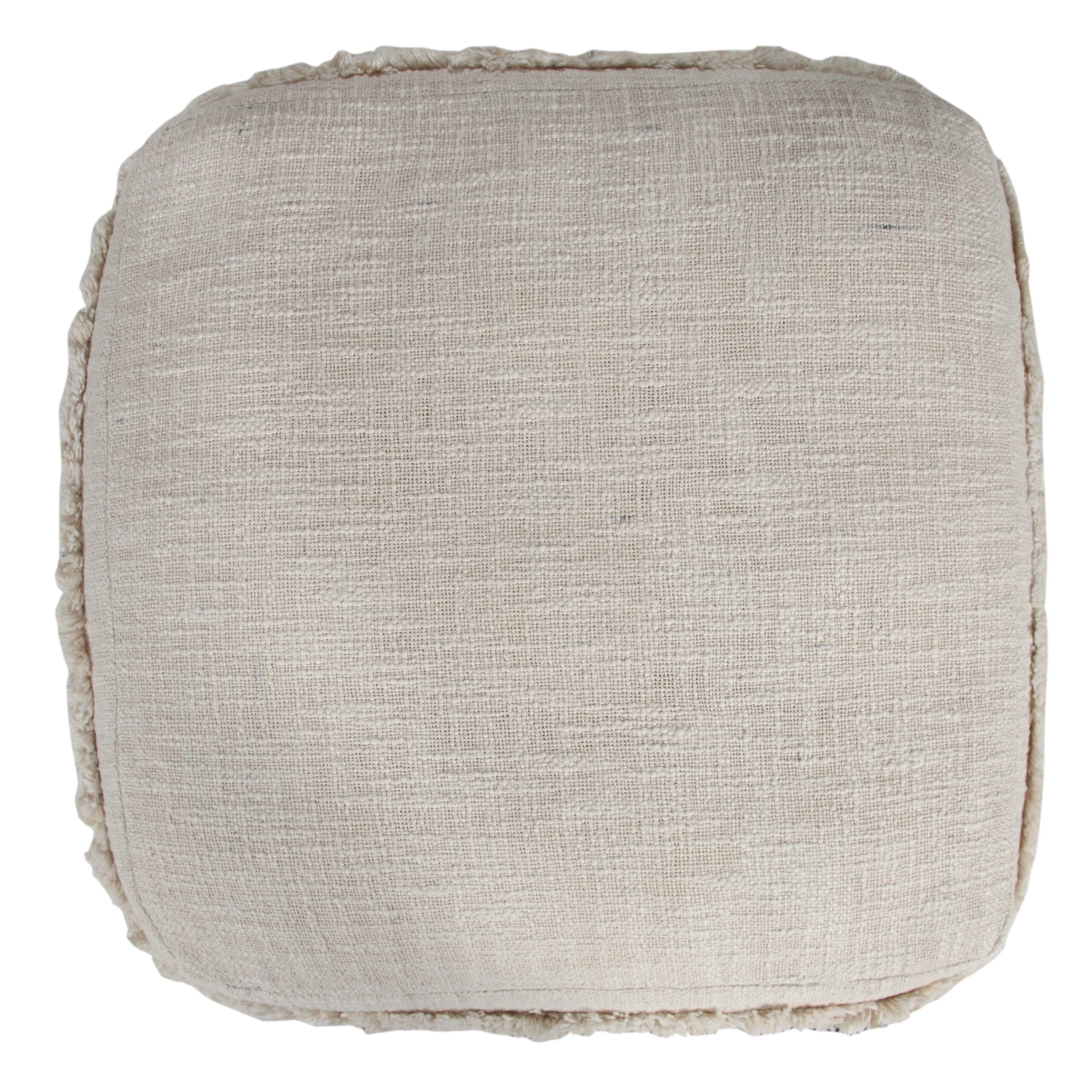 Bring warmth, texture, and functionality into your home with this handmade cotton pouf ottoman. Featuring a beautifully woven 100% cotton cover and fringe trim accents, this versatile square pouf delivers both comfort and style. Measuring 18 inches wide x 14 inches high, it’s the perfect size for small spaces yet large enough to serve multiple purposes. Use it as a cozy footrest, extra seating for guests, or a side table by adding a tray. The neutral earthy beige color coordinates easily with any interior – whether you™re going for boho chic, farmhouse charm, or modern minimalism. Ideal for: living rooms, bedrooms, reading nooks, nurseries, and entryways. Lightweight and portable so you can move it wherever you need extra comfort or style.