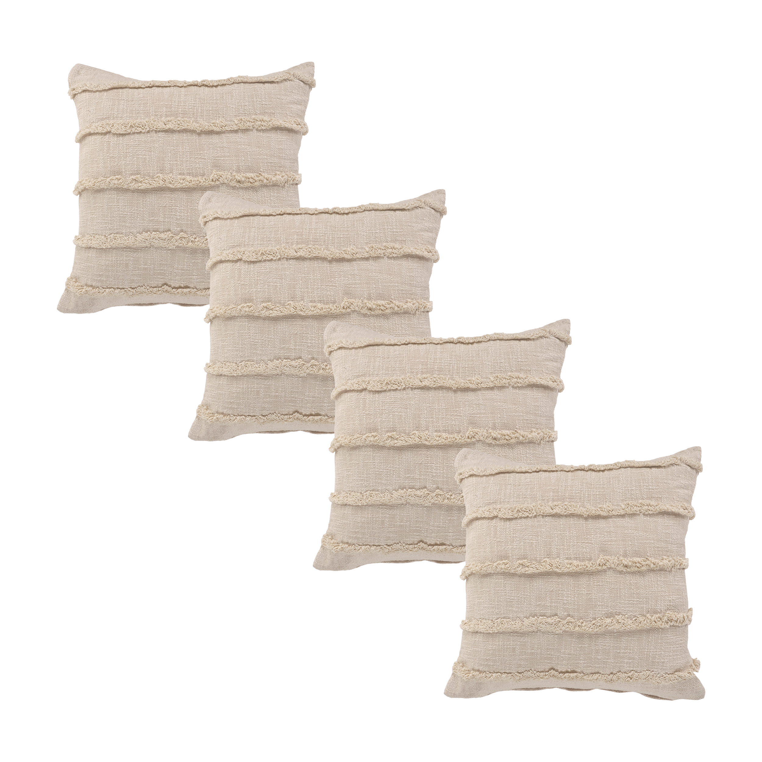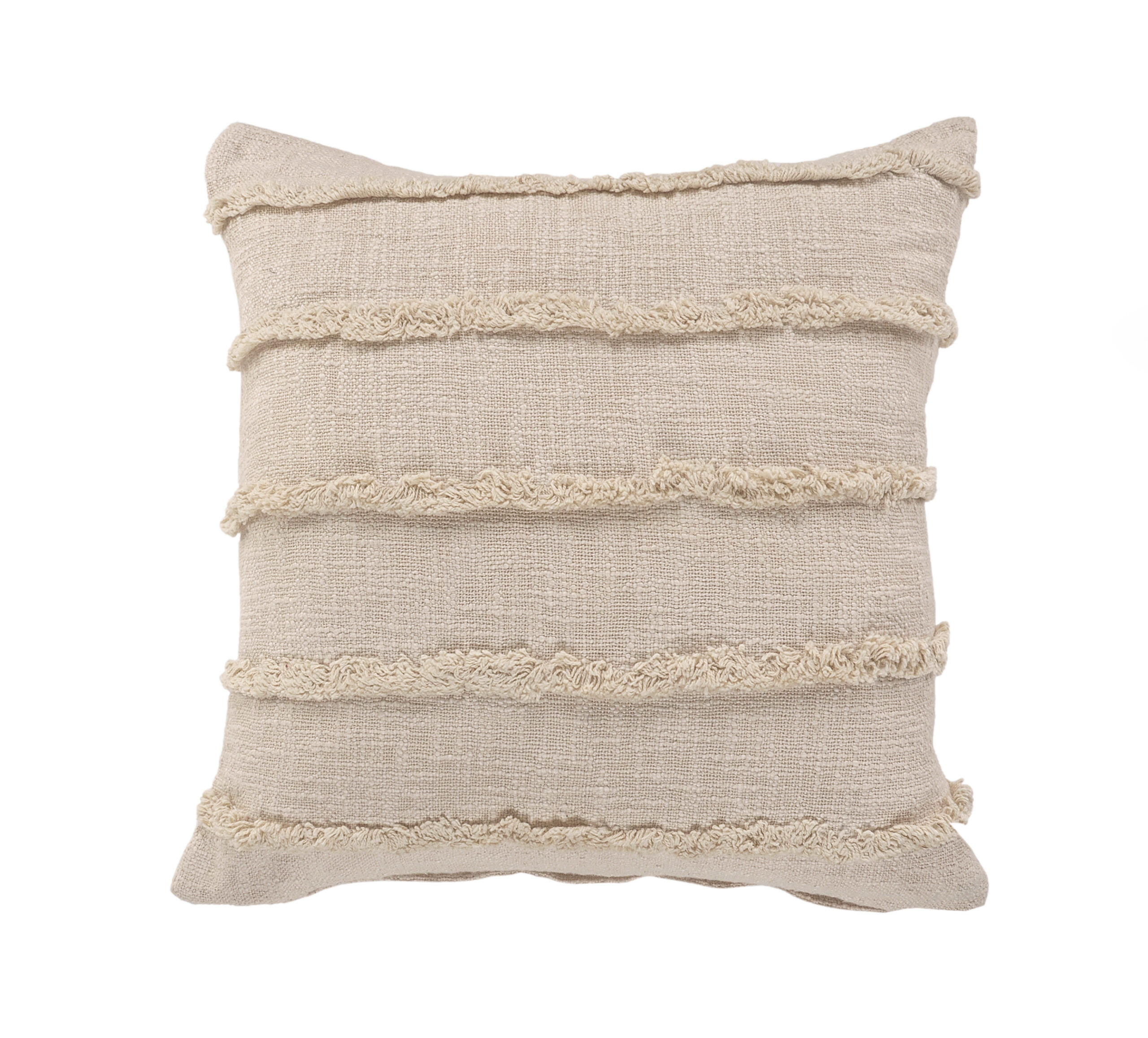 Designed to thrill, our pillow cover will add intricate mastery and eye pleasing designs to any room. This particular addition dwells perfectly on a comfy couch, bed, or bench. The over-tufted striped texture is a perfect accent to a variety of rooms. The solid color also allows these pillows to standalone or be easily added to a collection. Prop yourself up in style or just use for eye pleasing interior design. Made in India, our pillow covers are made to last and are soft to the touch.