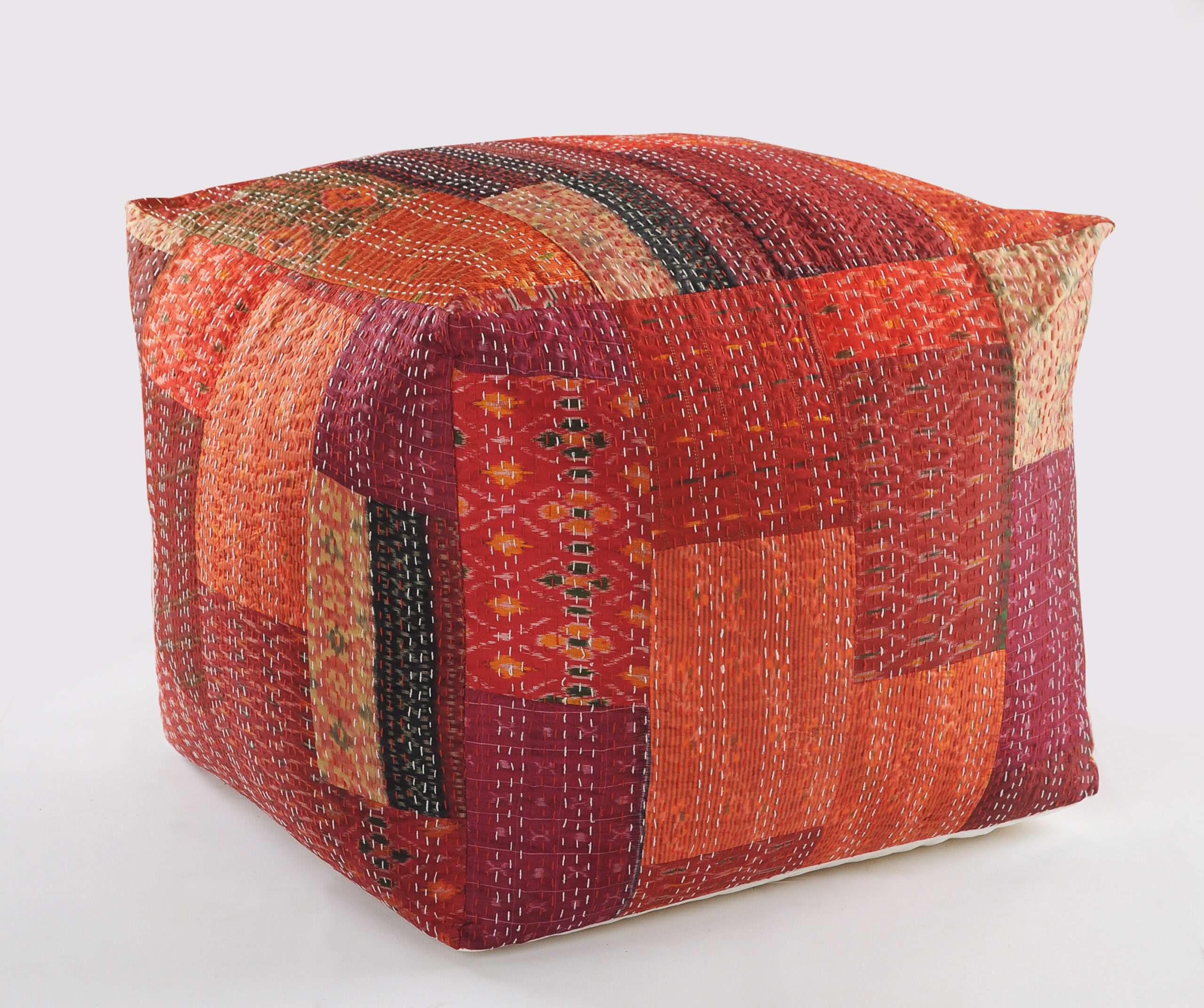 Our Kantha collection is an artisanal study of the bold and rich cultures and traditions of India. These products are handcrafted using a technique passed down through generations wherein the bright and vibrant swatches of saris are carefully stitched together to create intimate works of art that can become family heirlooms. We hope that you enjoy this sincere exchange of culture and tradition, and that your home is enriched by its presence. Each piece is truly one of a kind, the image provided is only a guarantee of color family and general appearance.