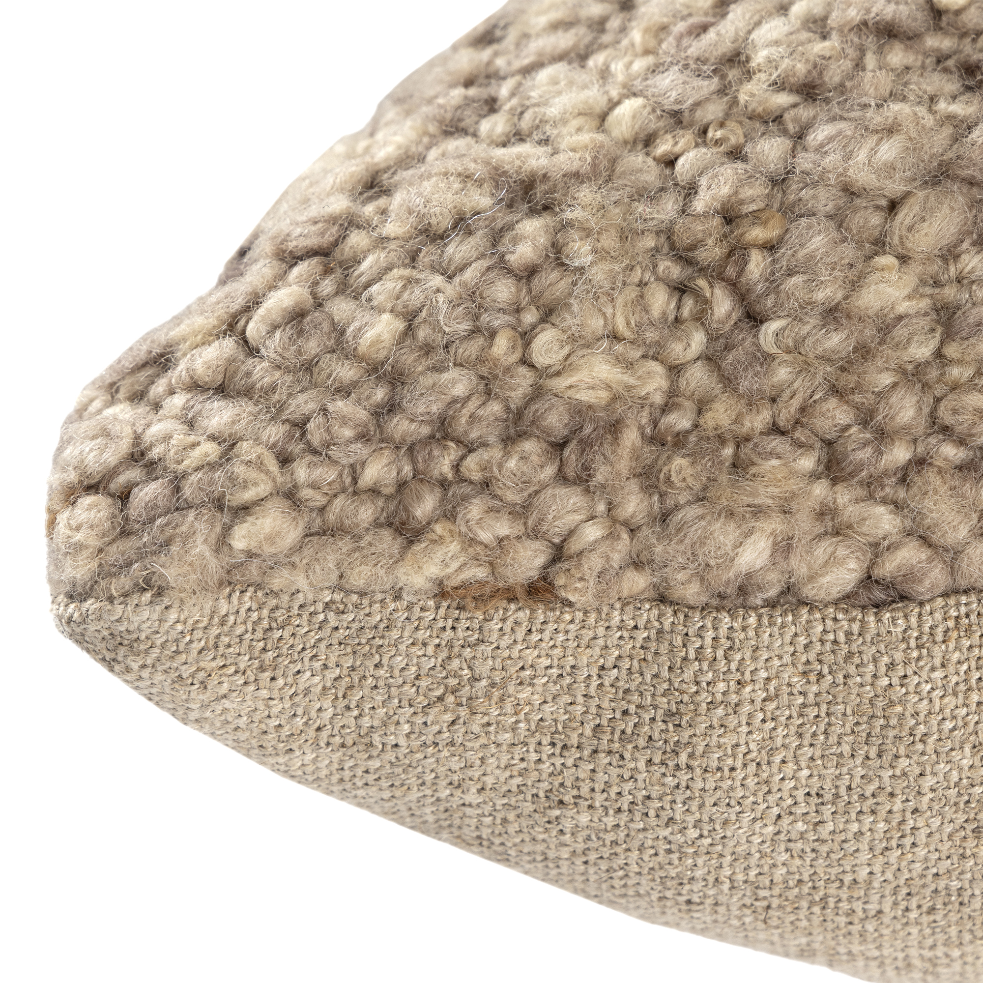 This hand-woven, wool pillow cover features a rustic boucle textured design that effortlessly blends warm brown and beige tones. The natural texture and durability of wool make this pillow cover perfect for a wide range of decor styles and ages including adult, teen, tween, and kids. The zipper closure allows for easy insert placement (insert not included). Naturally durable, this pillow cover will maintain its artisan-crafted appearance for years to come.