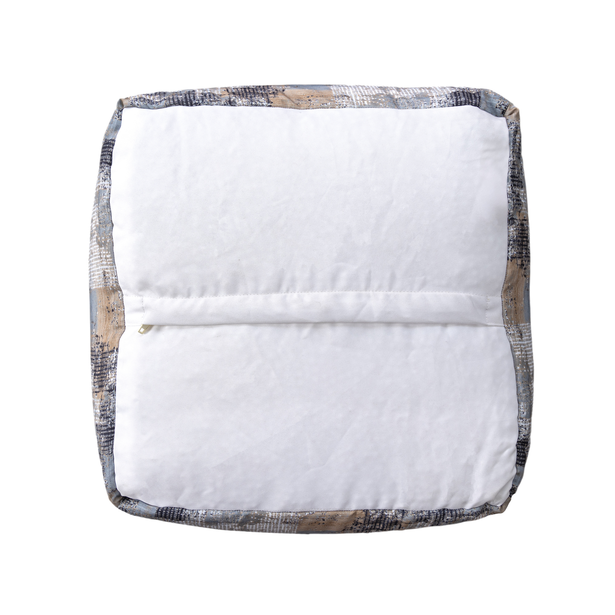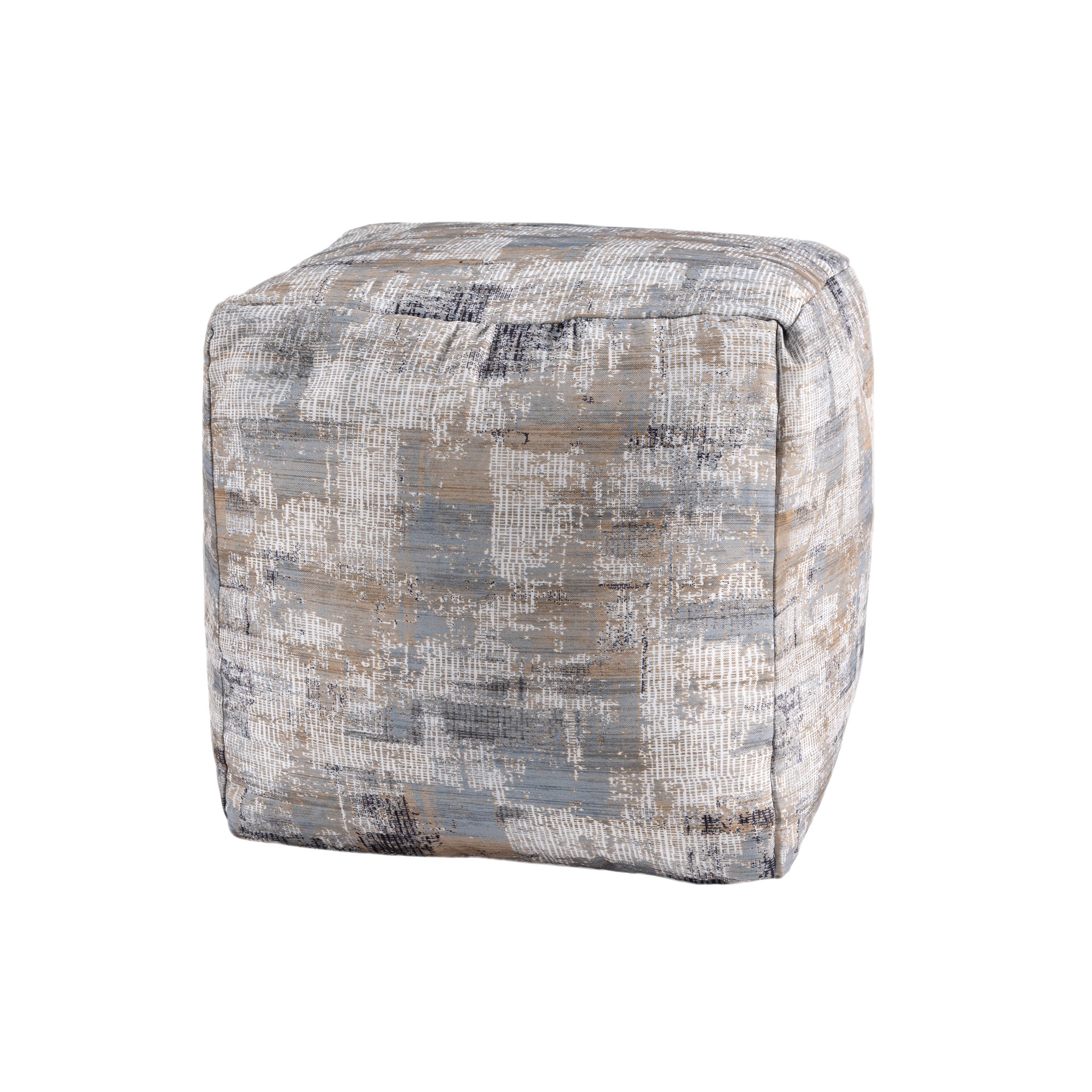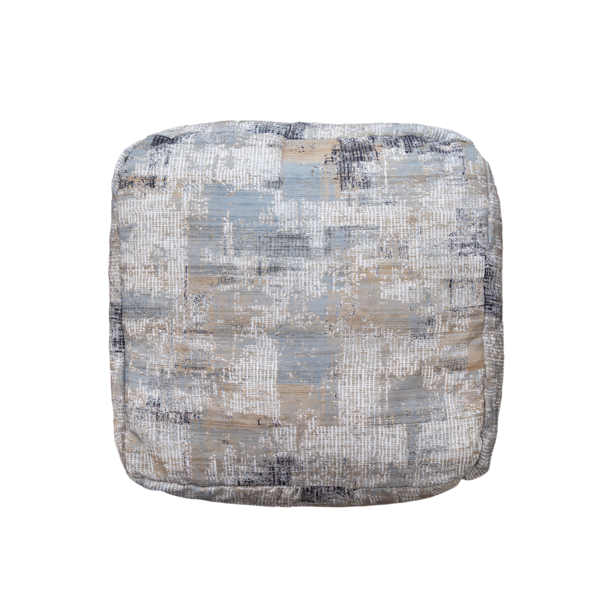 Transform your space with this stylish and functional pouf, perfect for adding comfort and charm to any room. Hand-braided in India from 100% cotton, it offers durability and a soft, inviting texture. The abstract geometric pattern in neutral taupe, denim, and blue tones complements modern, contemporary, casual, farmhouse, or coastal interiors. Versatile in use, it serves as an ottoman, extra seating, or decorative accent, while the square shape and hand-woven texture enhance its visual appeal. Filled with EPS beads, it combines practicality with aesthetic elegance.